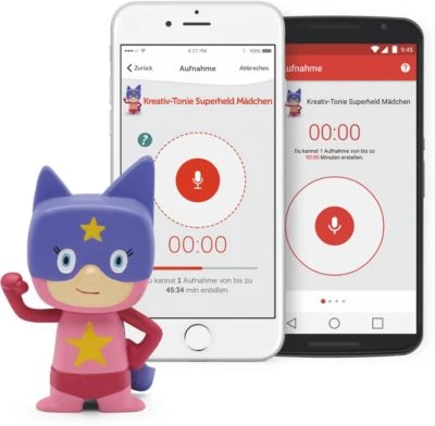 Wie für alle Kreativ-Tonies, muss du dir auch für die Superheldin ein kostenloses Toniecloud Kundenkonto einrichten und schon kannst du deine Geschichten, Lieder, Nachrichten, vorhandene Hörbücher und die wildesten Hörabenteuer mit ihm verknüpfen.